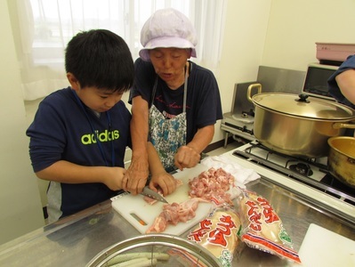 思いました。せんべい汁をみんなと協力して作りました。ごはん作りもたいへんなことがたくさんあり