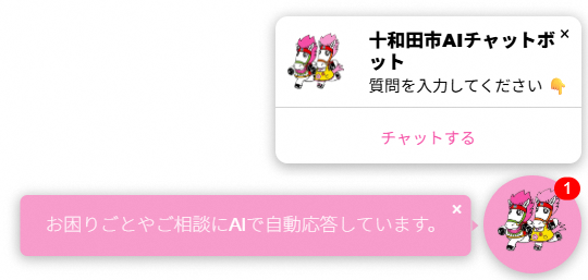 皆さまからのお問い合わせに対する利便性向上等を目的に、AI(人工知能)が問い合わせに対して自動で回答するAIチャットボットを市ホームページに導入しました。